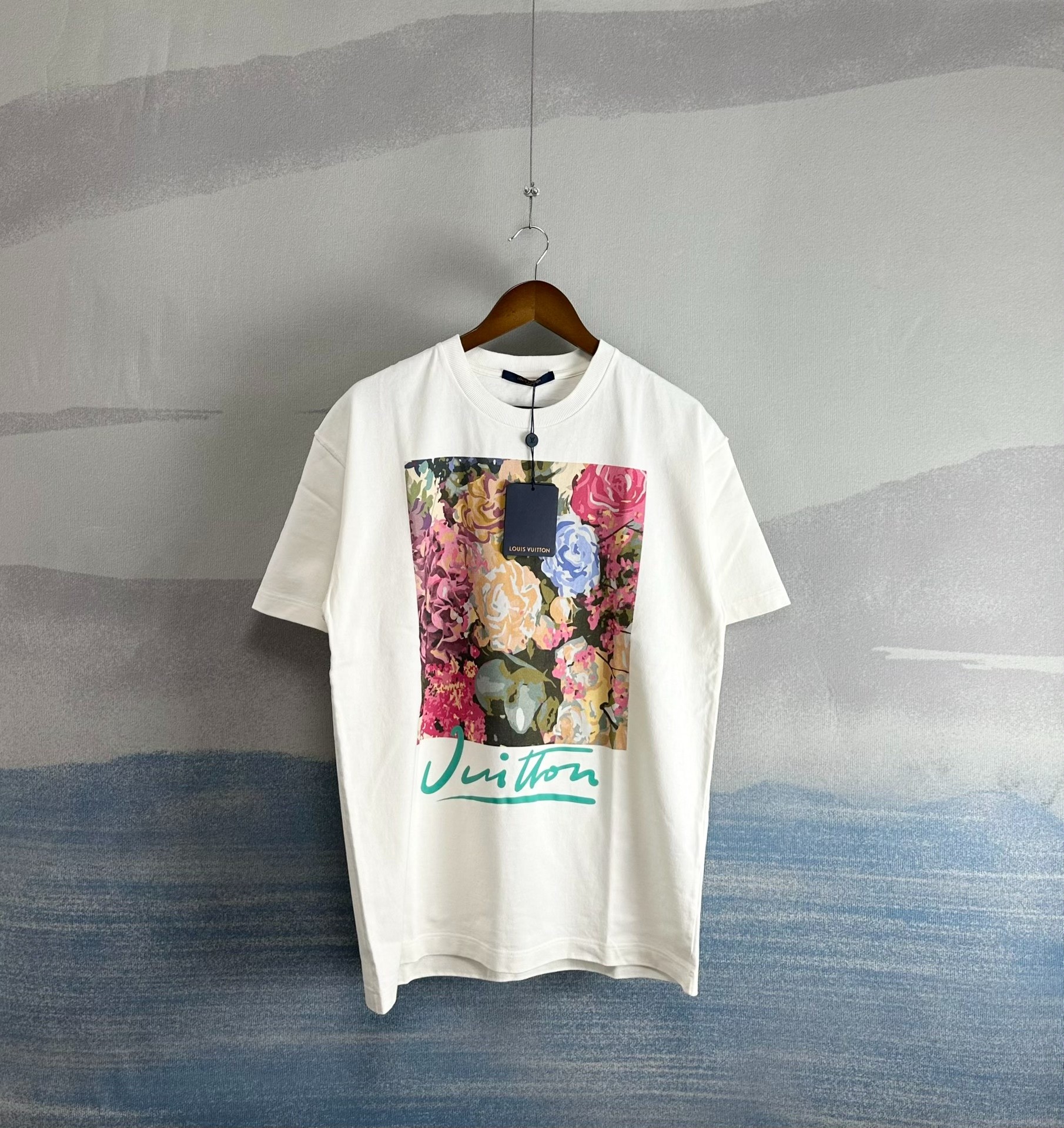 Louis Vuitton LV White Floral Pattern Short Sleeve