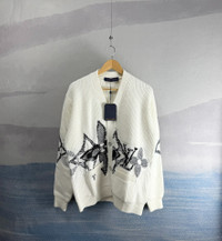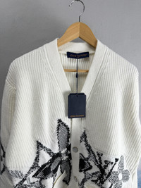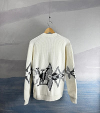 Louis Vuitton LV white floral wool cardigan for skiing