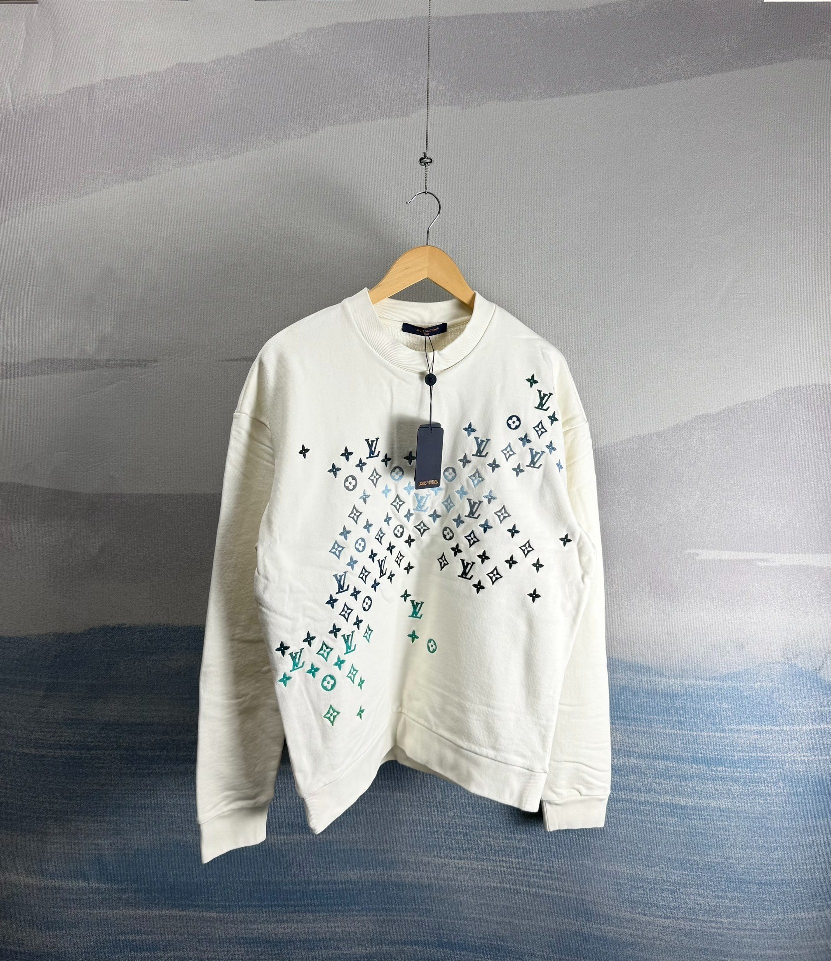 Louis Vuitton LV White Iridescent Gradient Embroidered Sweatshirt