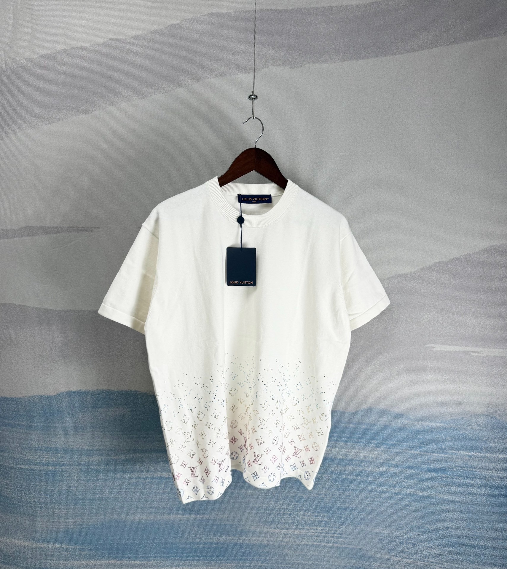Louis Vuitton LV White Rhinestone Rainbow Gradient Short-Sleeve