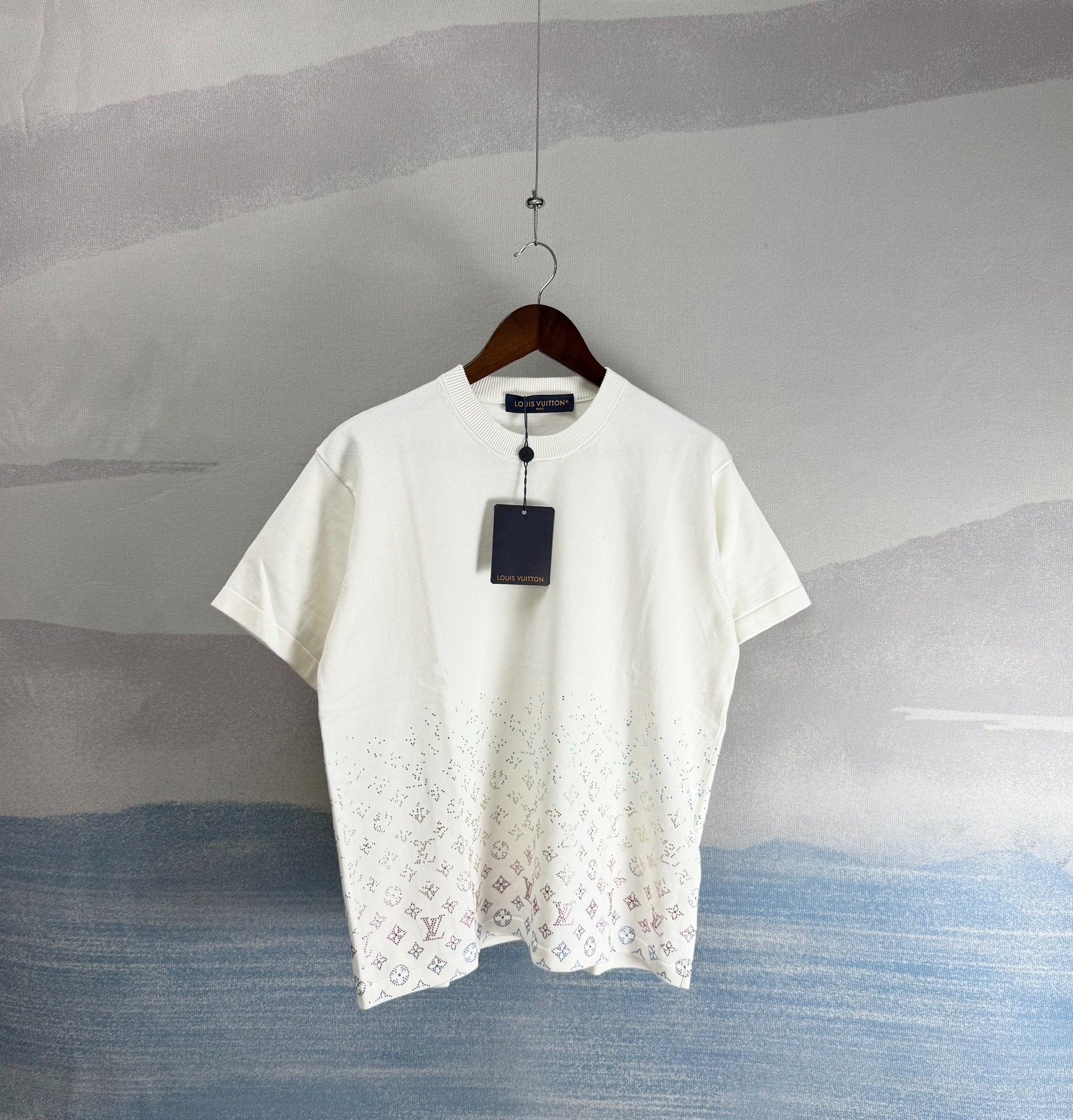 Louis Vuitton LV White Rhinestone Rainbow Gradient Short-Sleeve