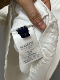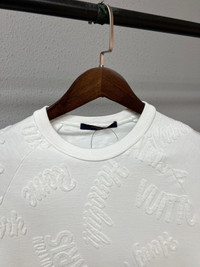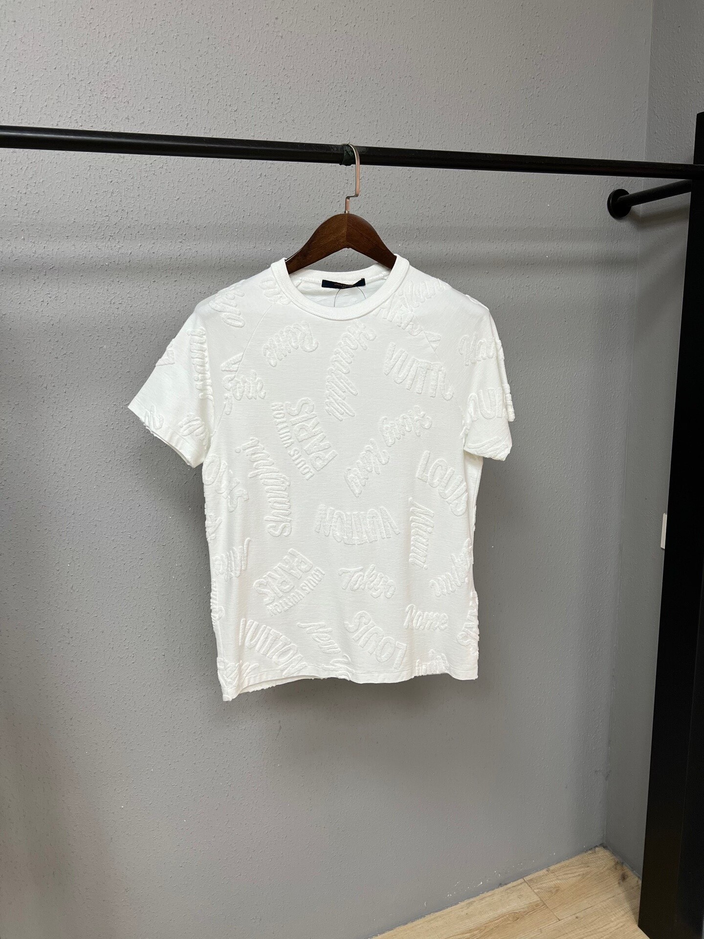 Louis Vuitton LV white short-sleeved t-shirt with embossed towel-texture logo.