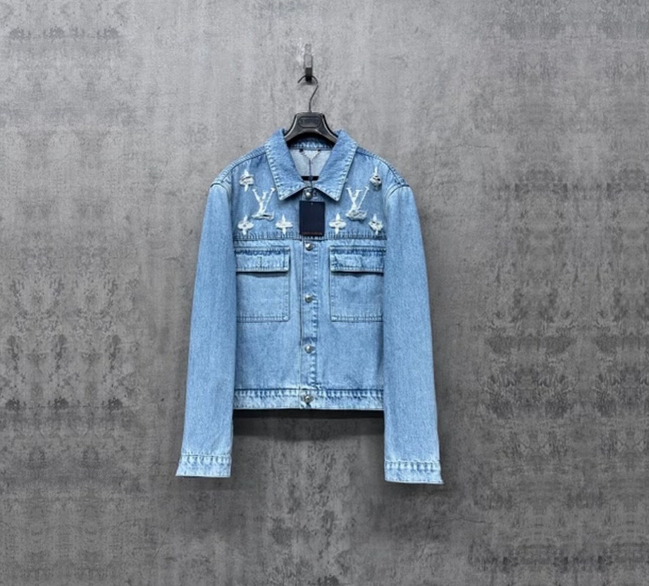 Louis Vuitton Lv25 Distressed Logo Denim Jacket