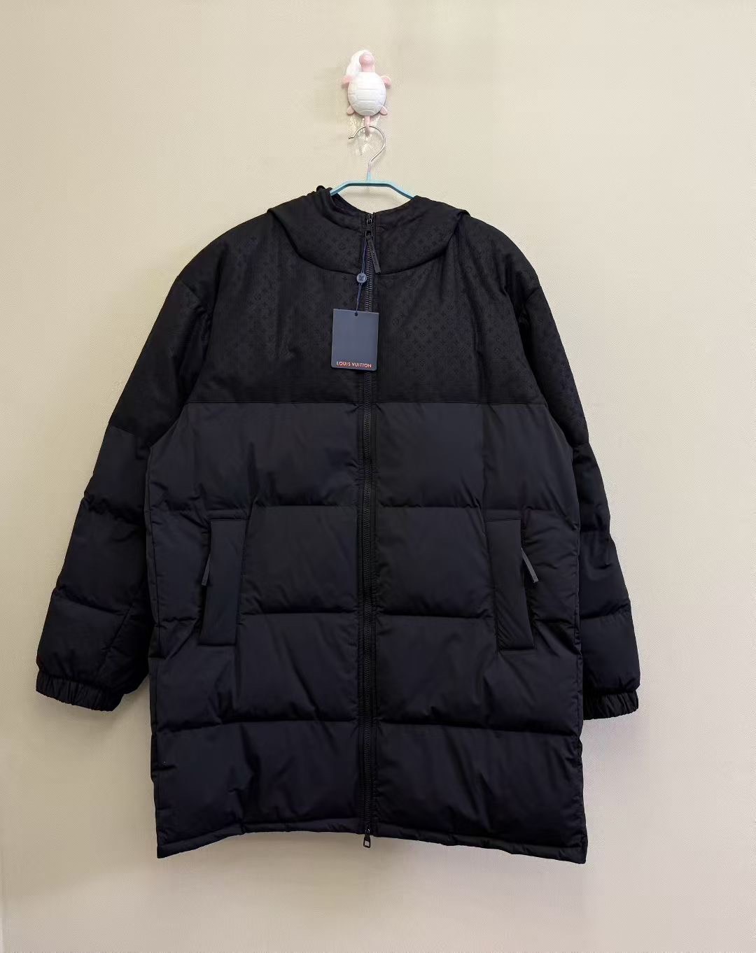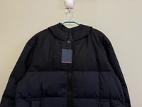 LOUIS VUITTON LV's latest black down jacket with embossed logo on the upper half.