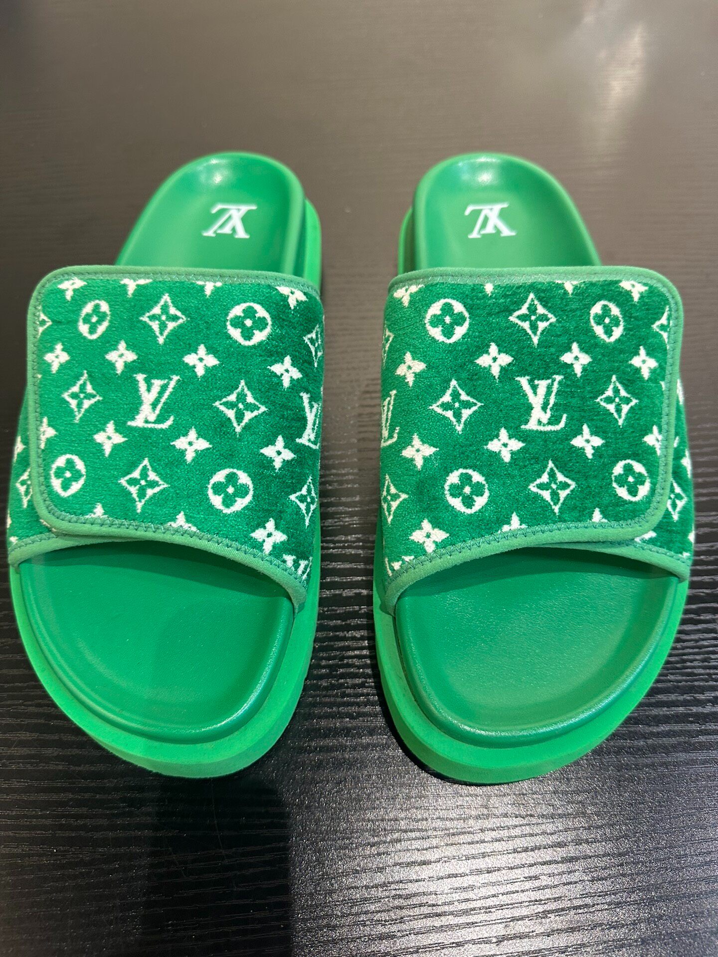 Louis Vuitton "Miami" Flat Slide Sandals — Monogram Canvas with Velcro Logo Strap