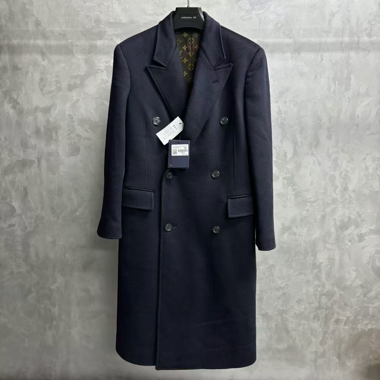 Louis Vuitton Navy Blue Solid Double-Breasted Long-Sleeve Coat with Flap Pockets