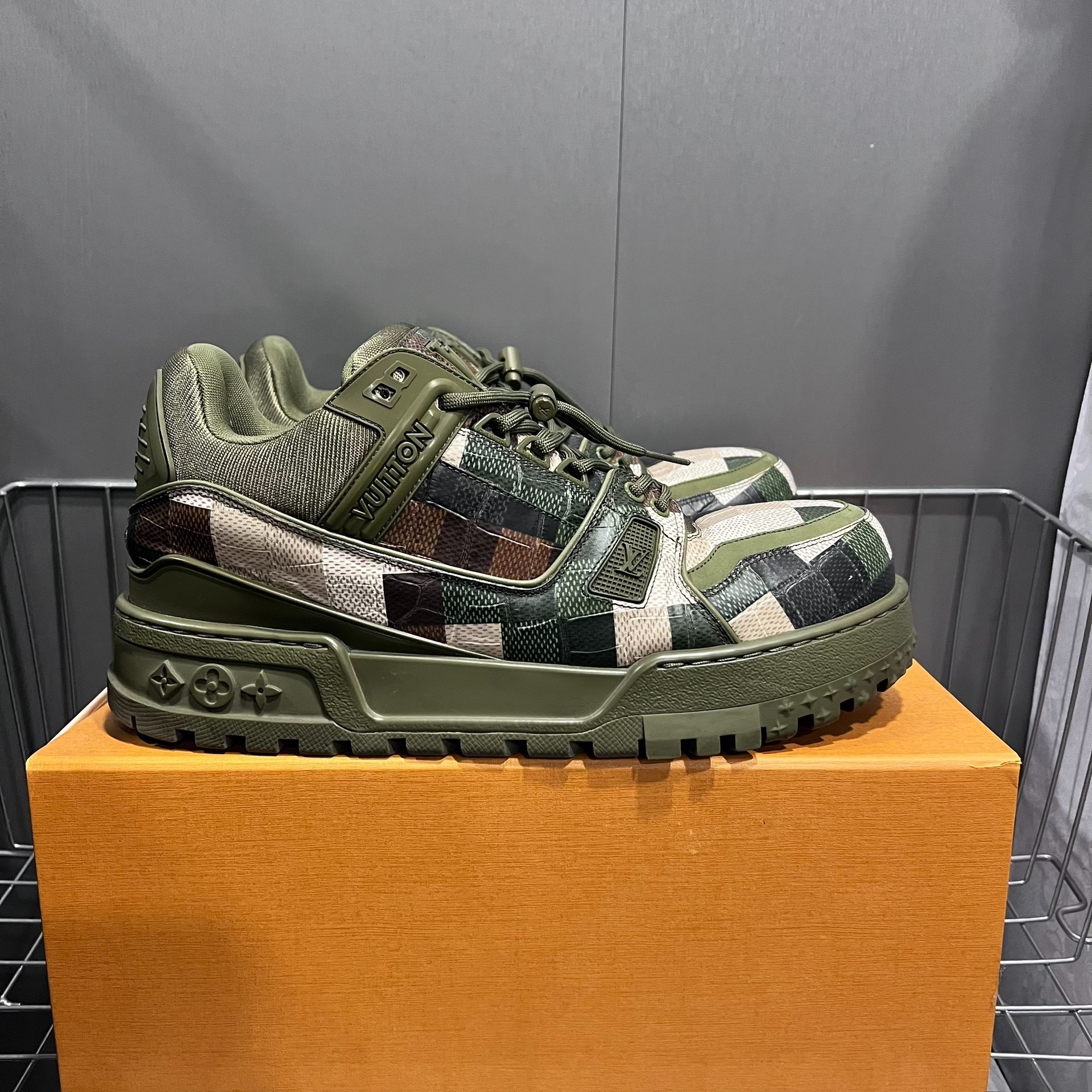 Louis Vuitton Pharrell Camouflage Green Crocodile Pattern Pudding Sneakers