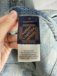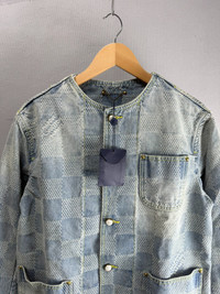 Louis Vuitton Pharrell Williams checkered pearl collarless denim jacket