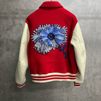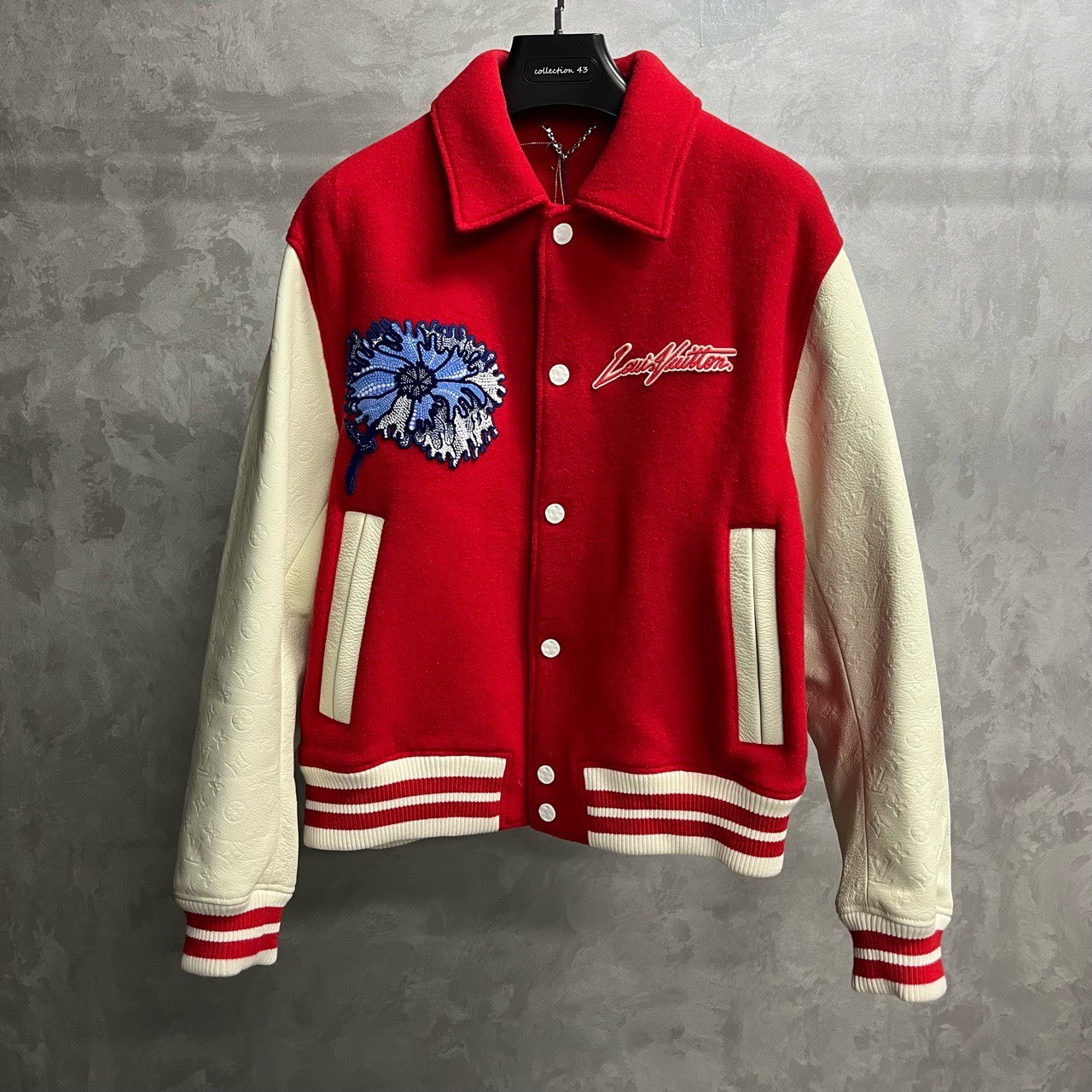 Louis Vuitton red lettering embroidered baseball waist jacket