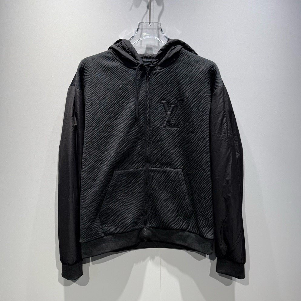 Louis Vuitton SS24 black logo technical zip-up hooded jacket