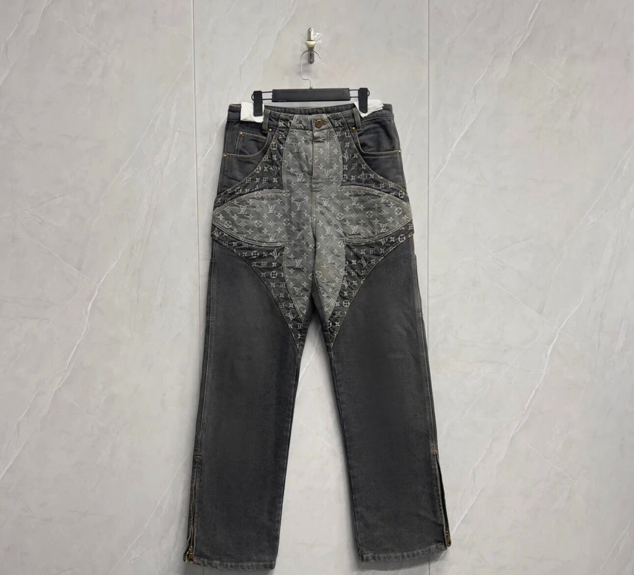 Louis Vuitton three-flower logo washed denim jeans
