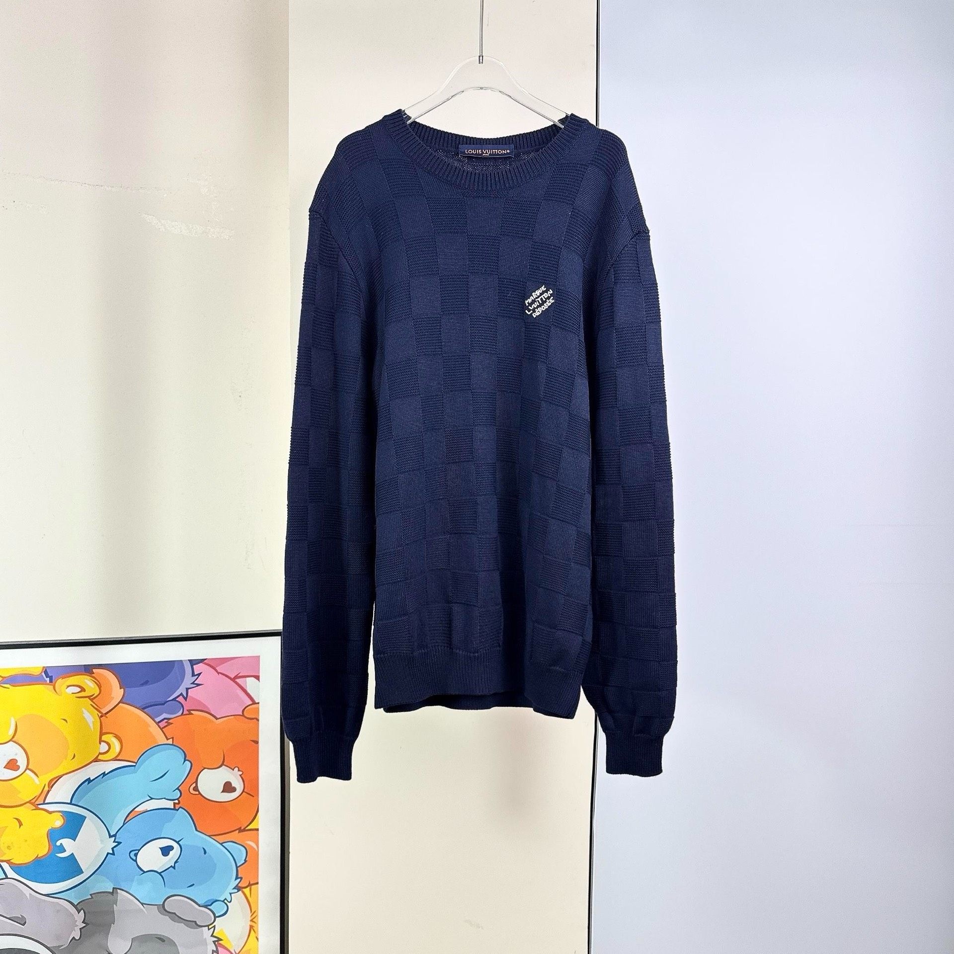 Louis Vuitton x Pharrell Williams navy blue checkered knit top