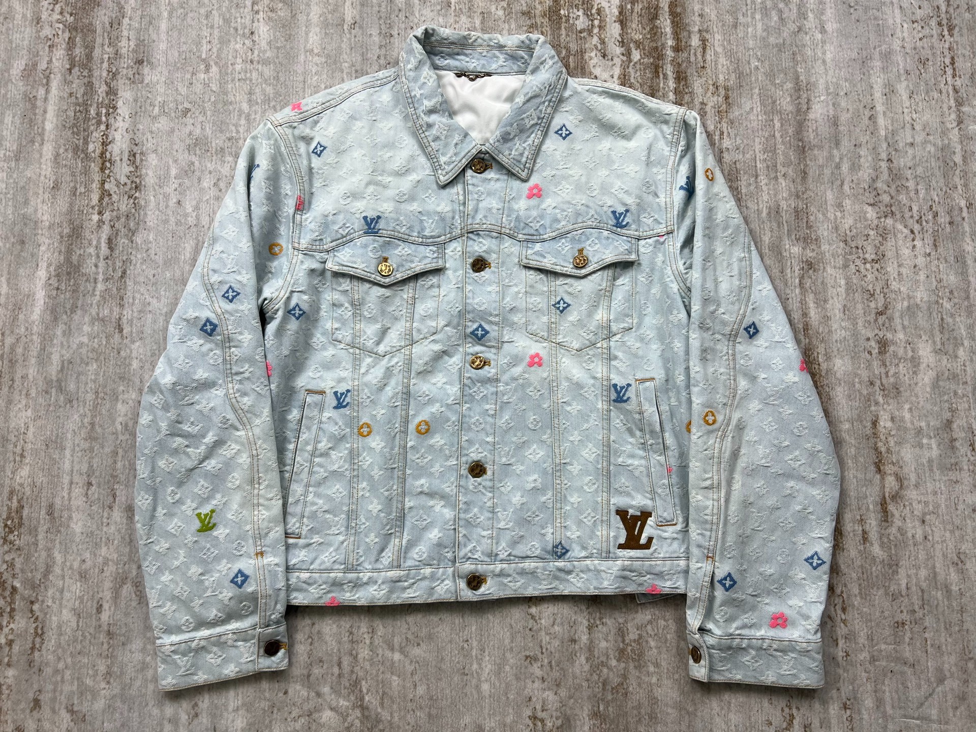 Louis Vuitton x Tyler collaboration blue monogram embroidered denim jacket