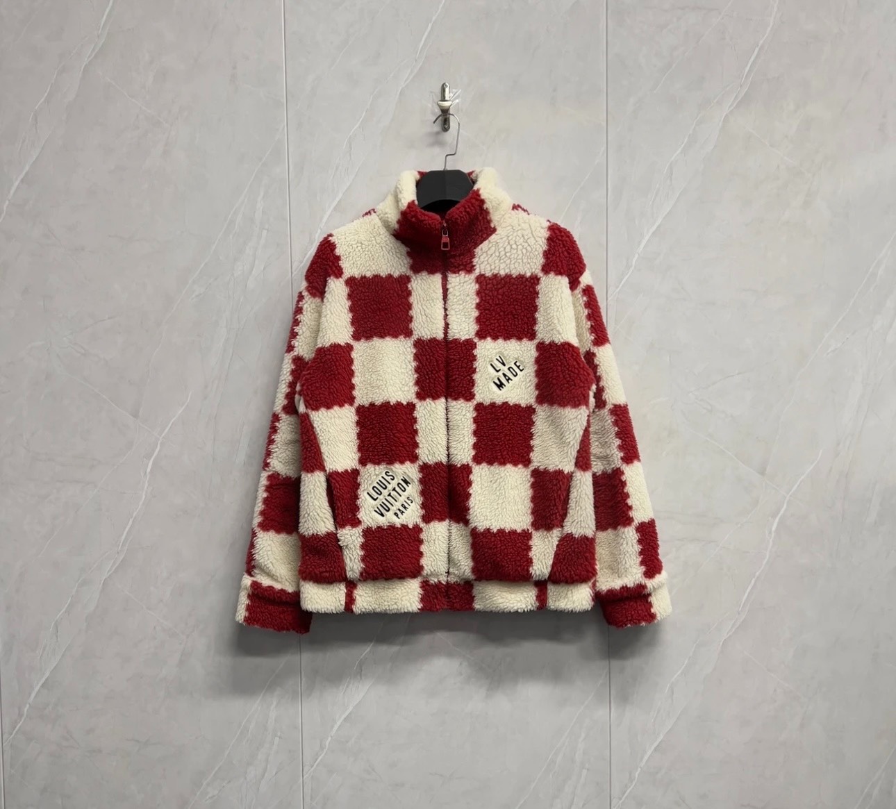 LouisVuitton Lv Checkerboard Logo Teddy Fleece Jacket