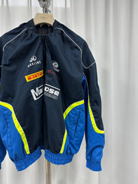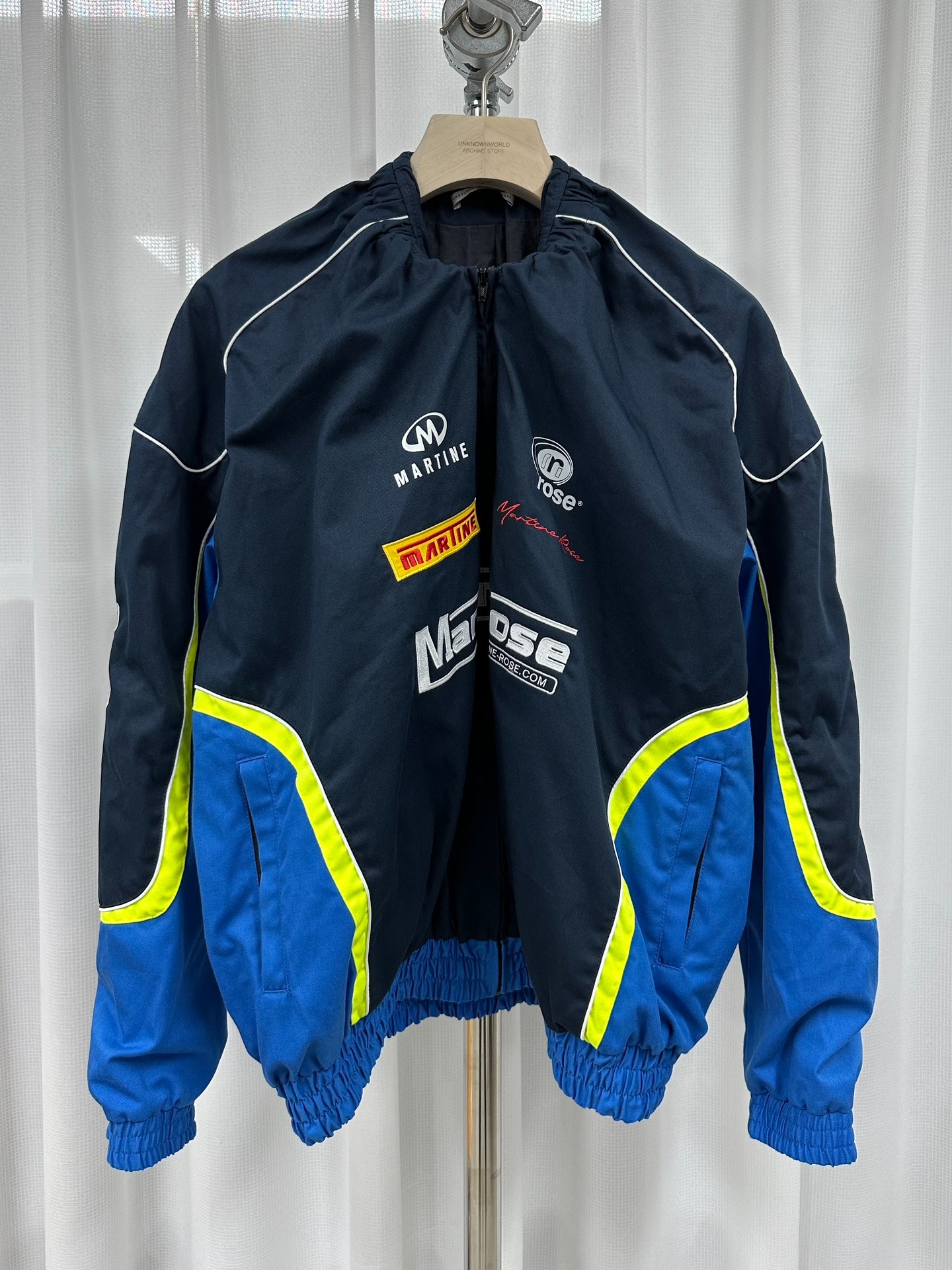 Martine Rose runway-style pleated collar racer jacket