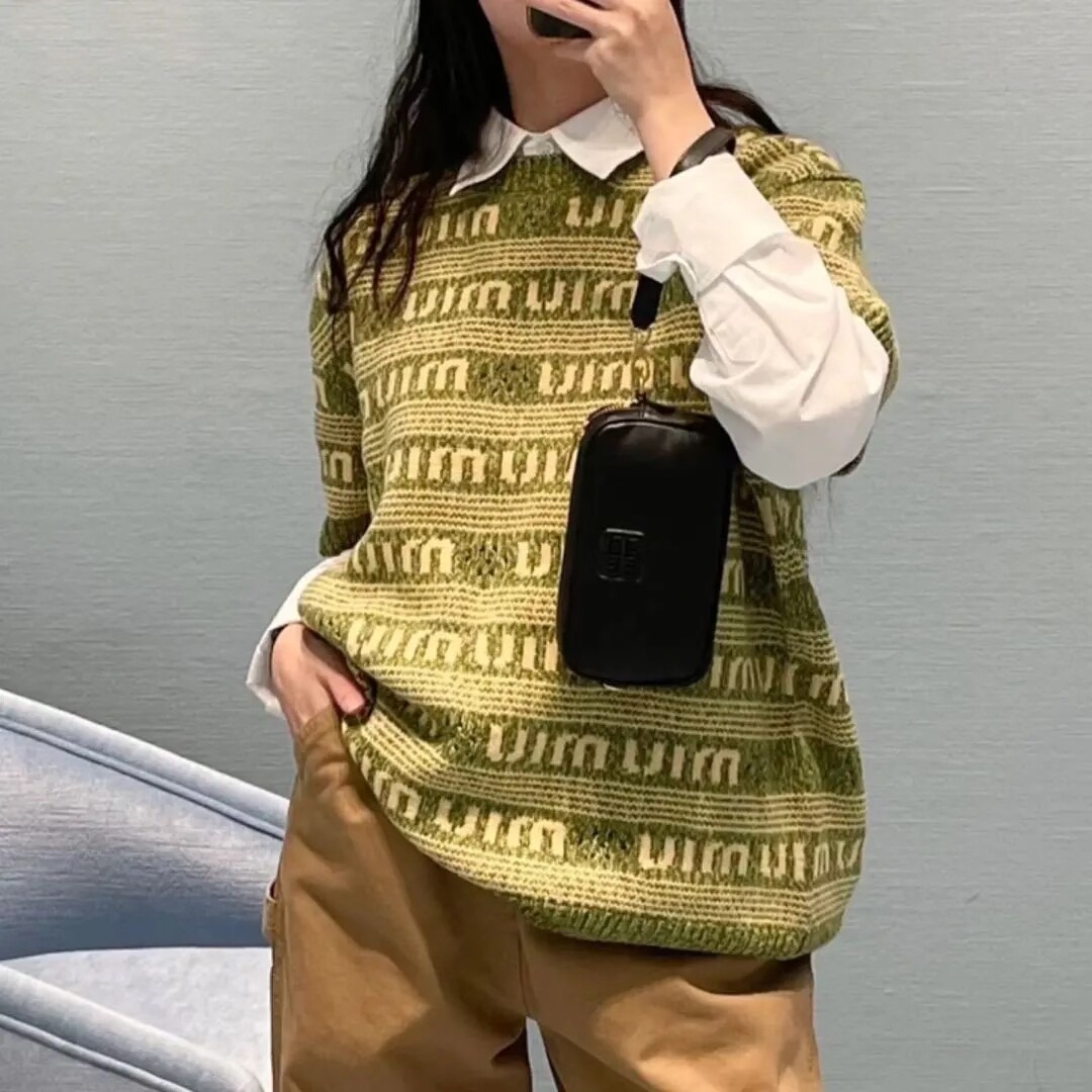 Miu Miu avocado green knitted short-sleeved sweater