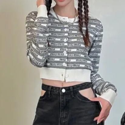Miu Miu black and white cashmere knit cardigan