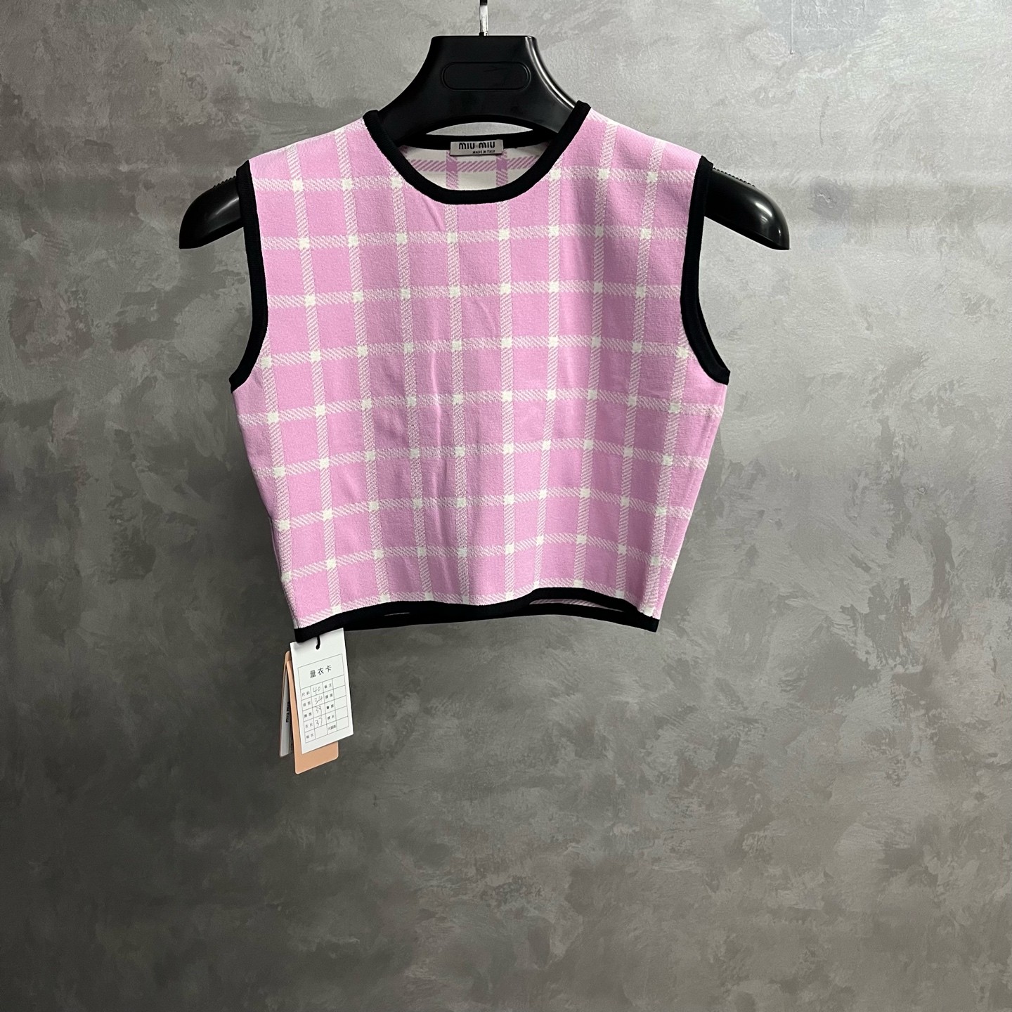 Miu Miu pink plaid crew neck sleeveless vest