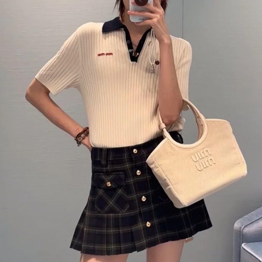 Miu Miu white knitted short-sleeved top