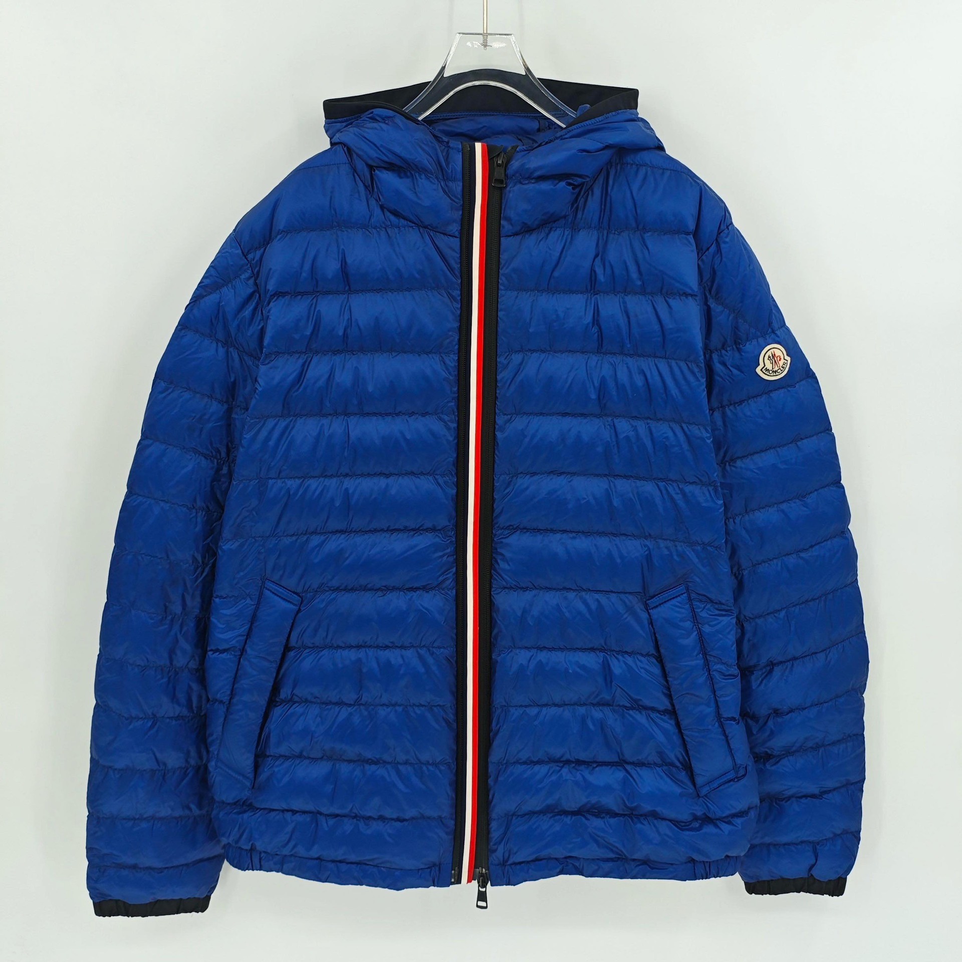 Moncler Blue Front Striped Logo Down Jacket