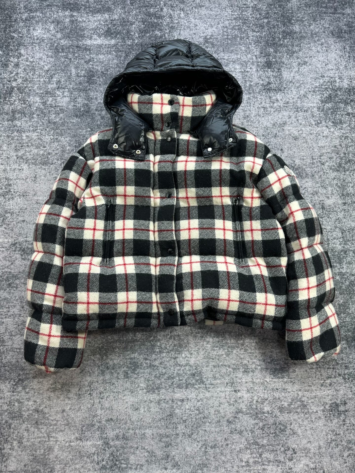 Moncler Caille Wool Check Down Jacket
