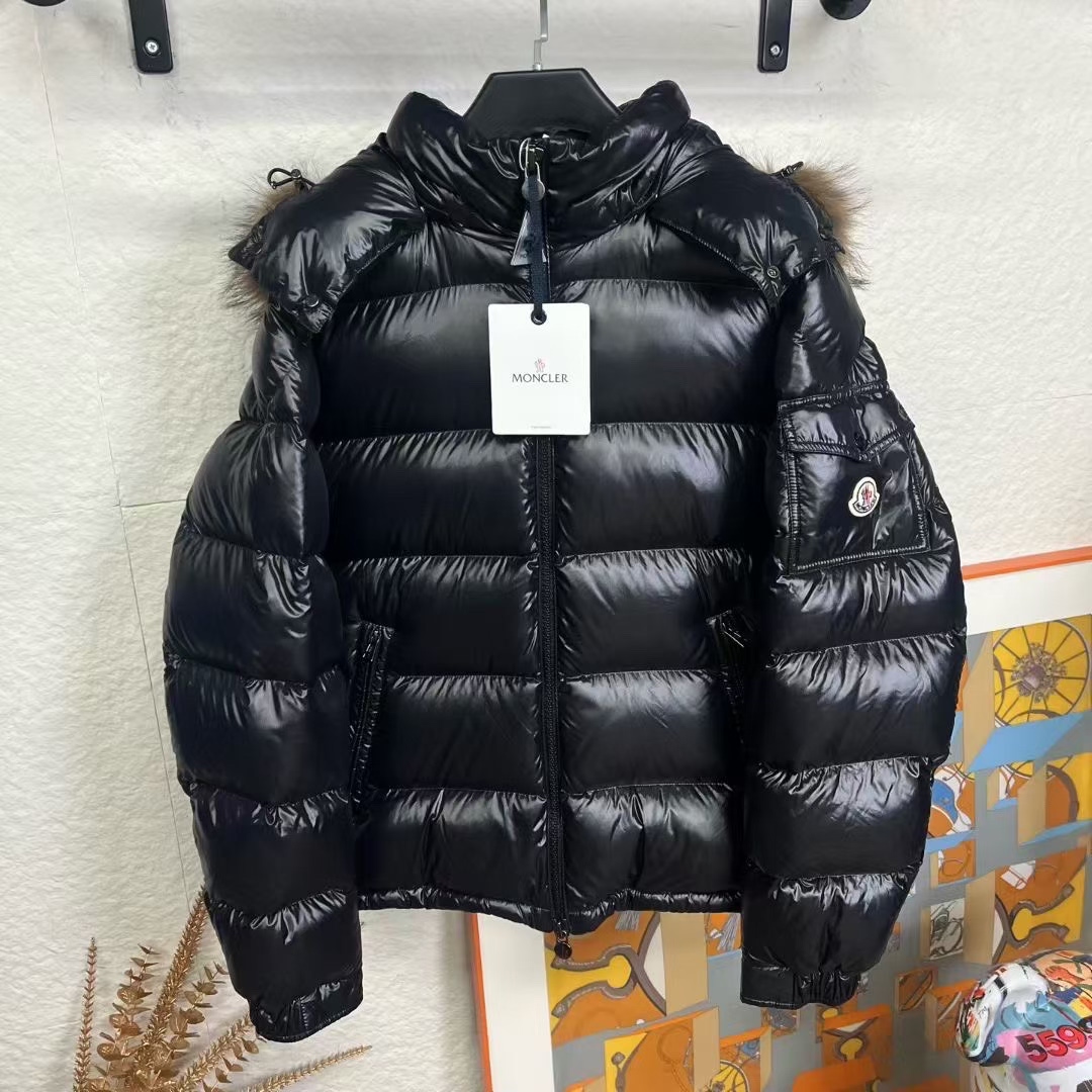 Moncler Maya Fur Black Glossy Down Jacket