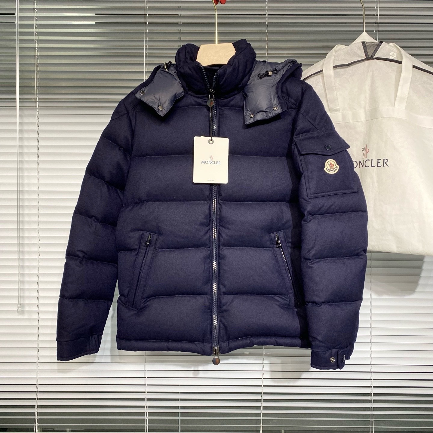 Global shipping with FedEx and typically delivered within 7 days Authentic only, all items are open to legit check All sales are final, no returns Shoulder 43cm, Chest 108cm, Length 66cm Sleeve badge with logo, detachable hood, stand-up collar, wool fabric, dark blue. Size: 1