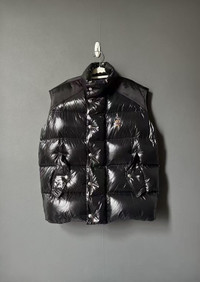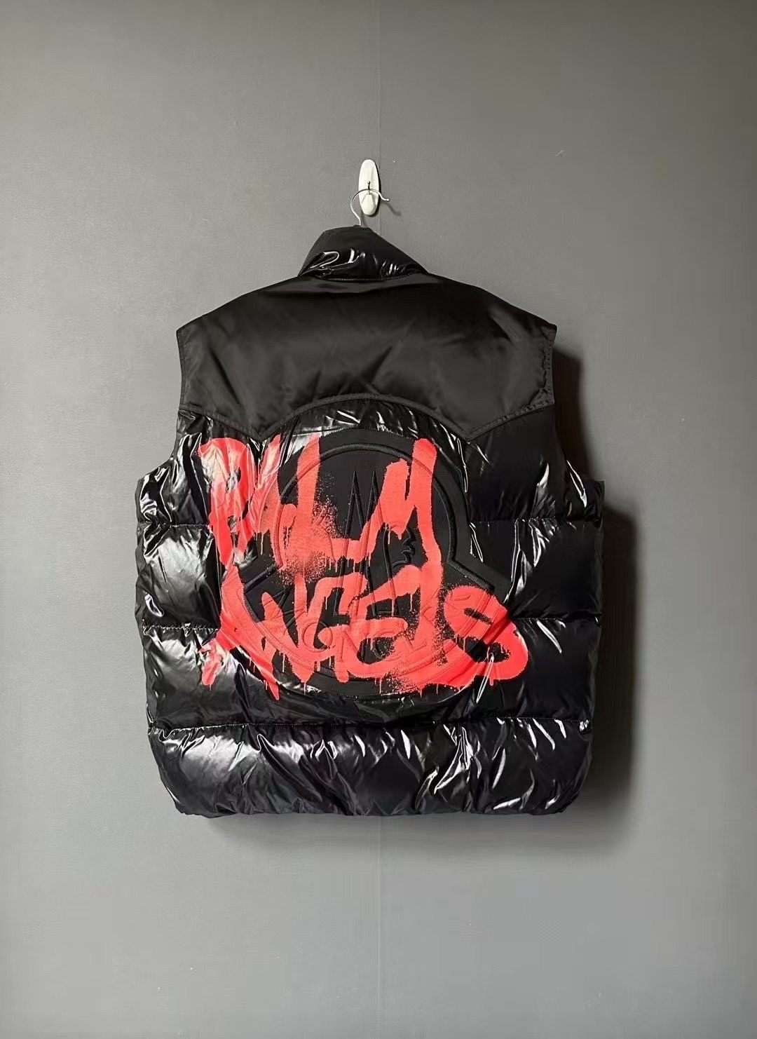 Moncler x PA collaboration down vest with graffiti design on the back.