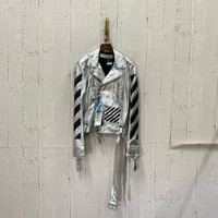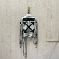 Off-white Silver Leather Jacket Lambskin