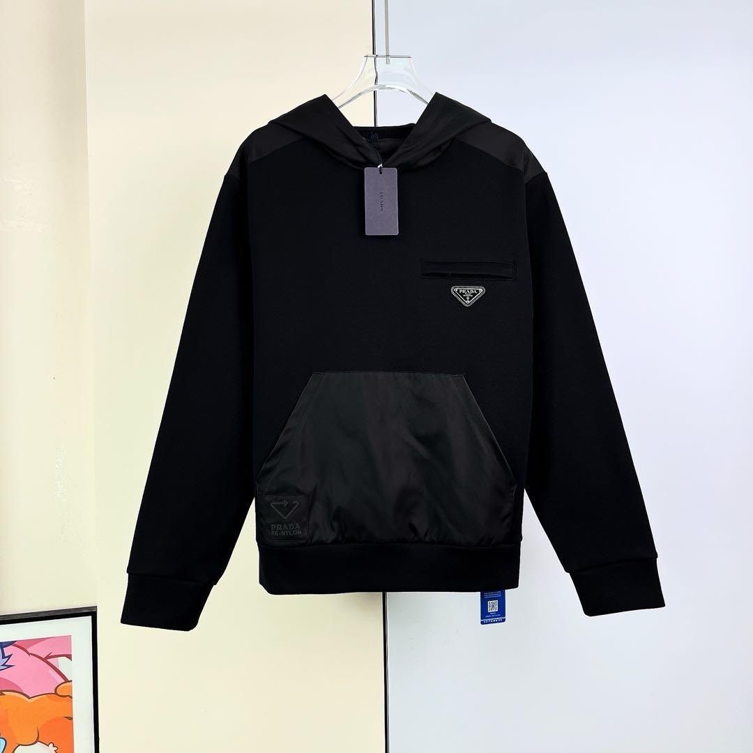 Prada black patchwork sweatshirt jacket with triangular logo