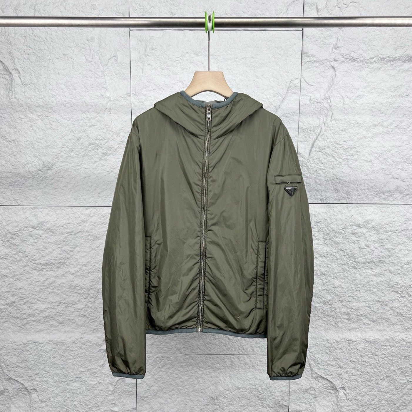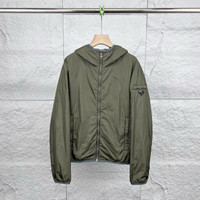Prada dark green triangle logo nylon hooded jacket