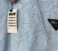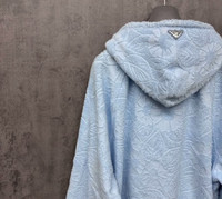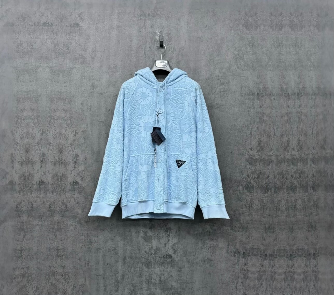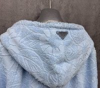 Prada floral jacquard embroidered triangle logo button-down hooded jacket