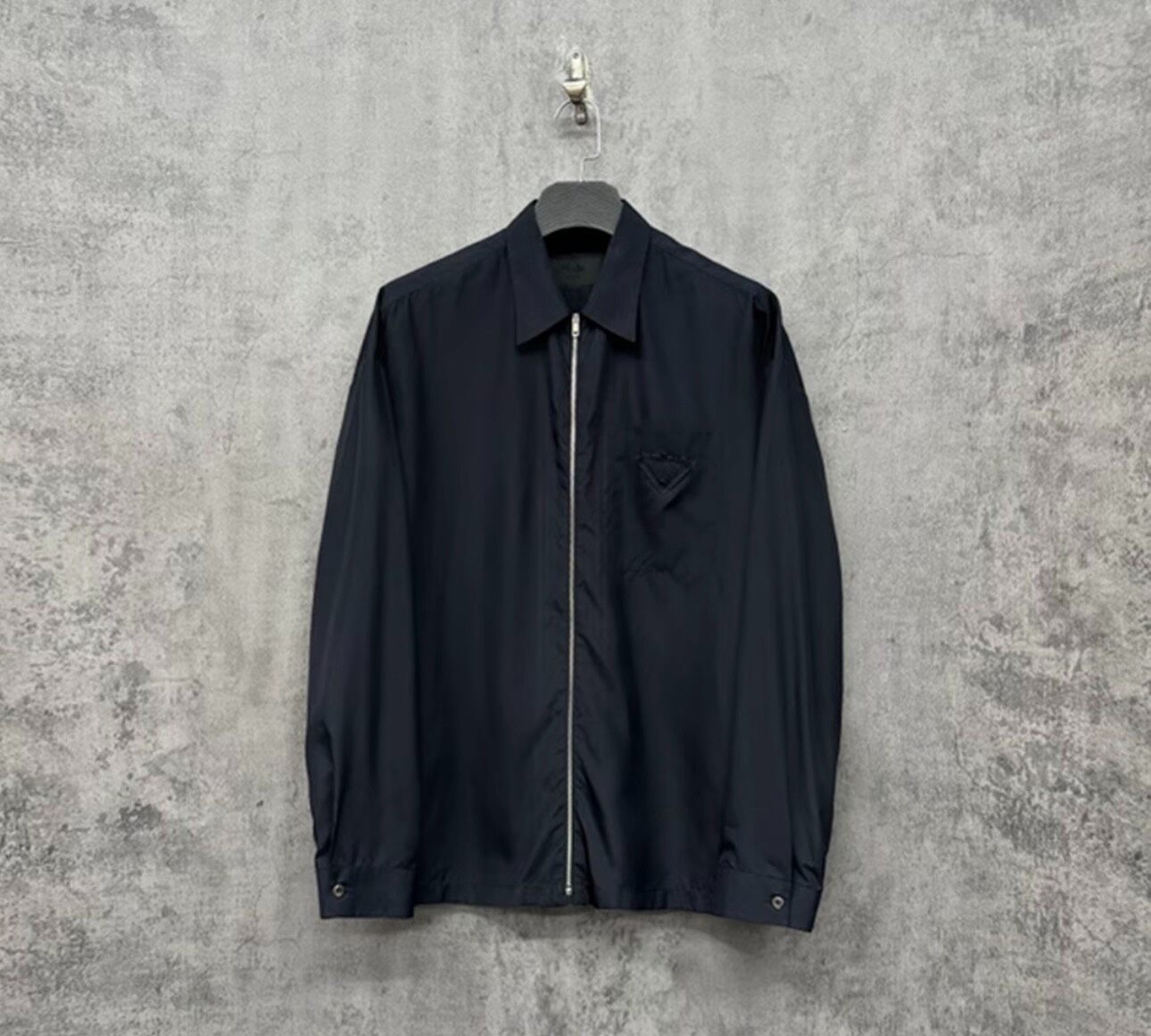 Prada Mulberry Silk Zip-Up Jacket with Triangle Logo