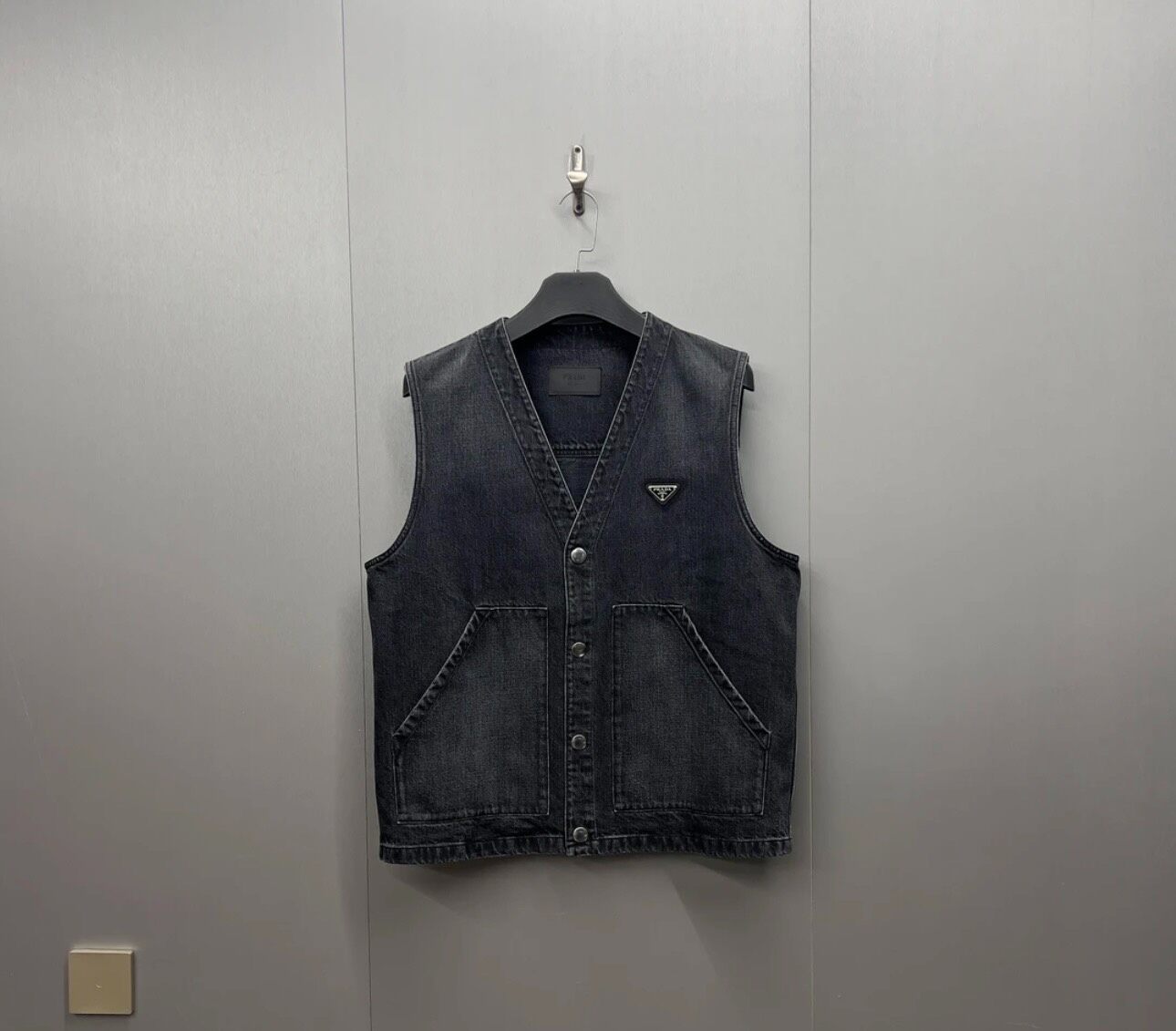 Prada New Triangle Logo Washed Denim Vest