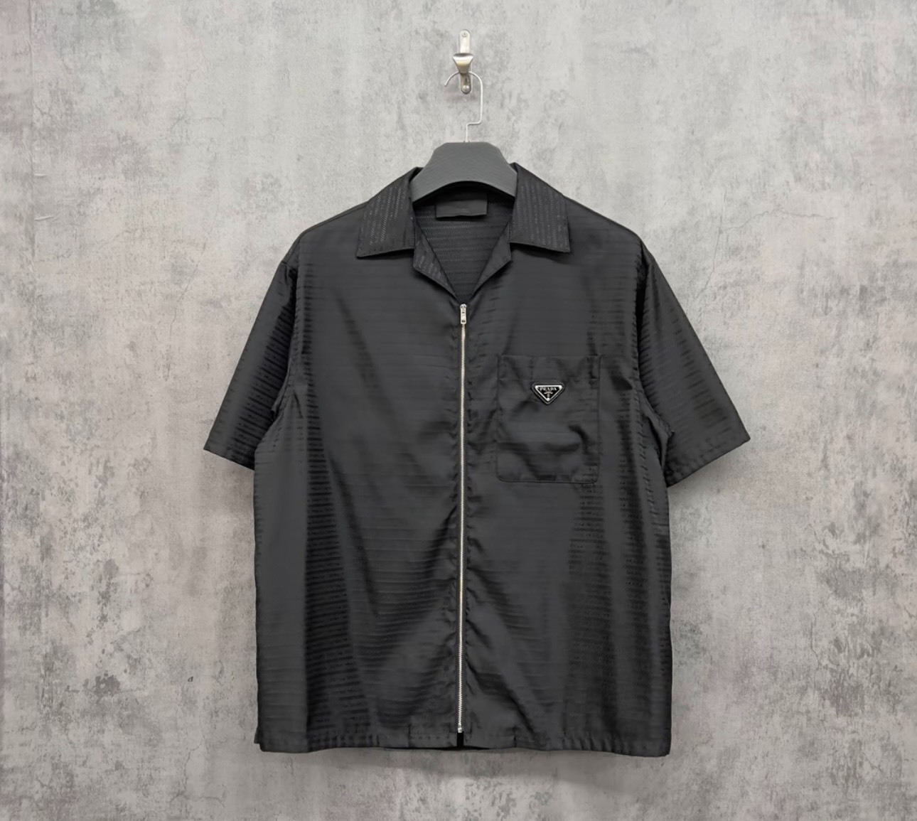 Prada/Prada new dark pattern full logo embroidered triangle short sleeve shirt