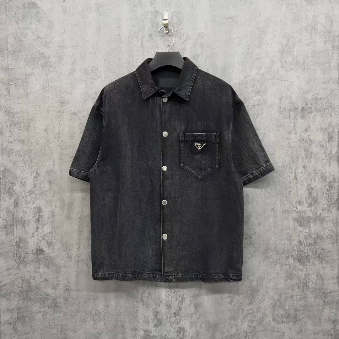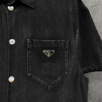 Prada triangle logo denim short-sleeved shirt