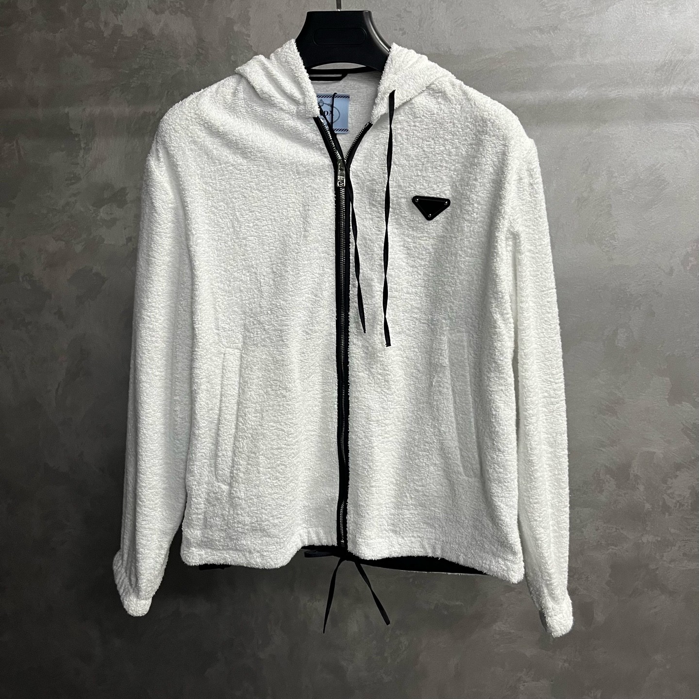 Prada white terry cloth hooded jacket