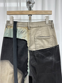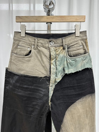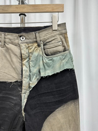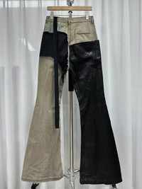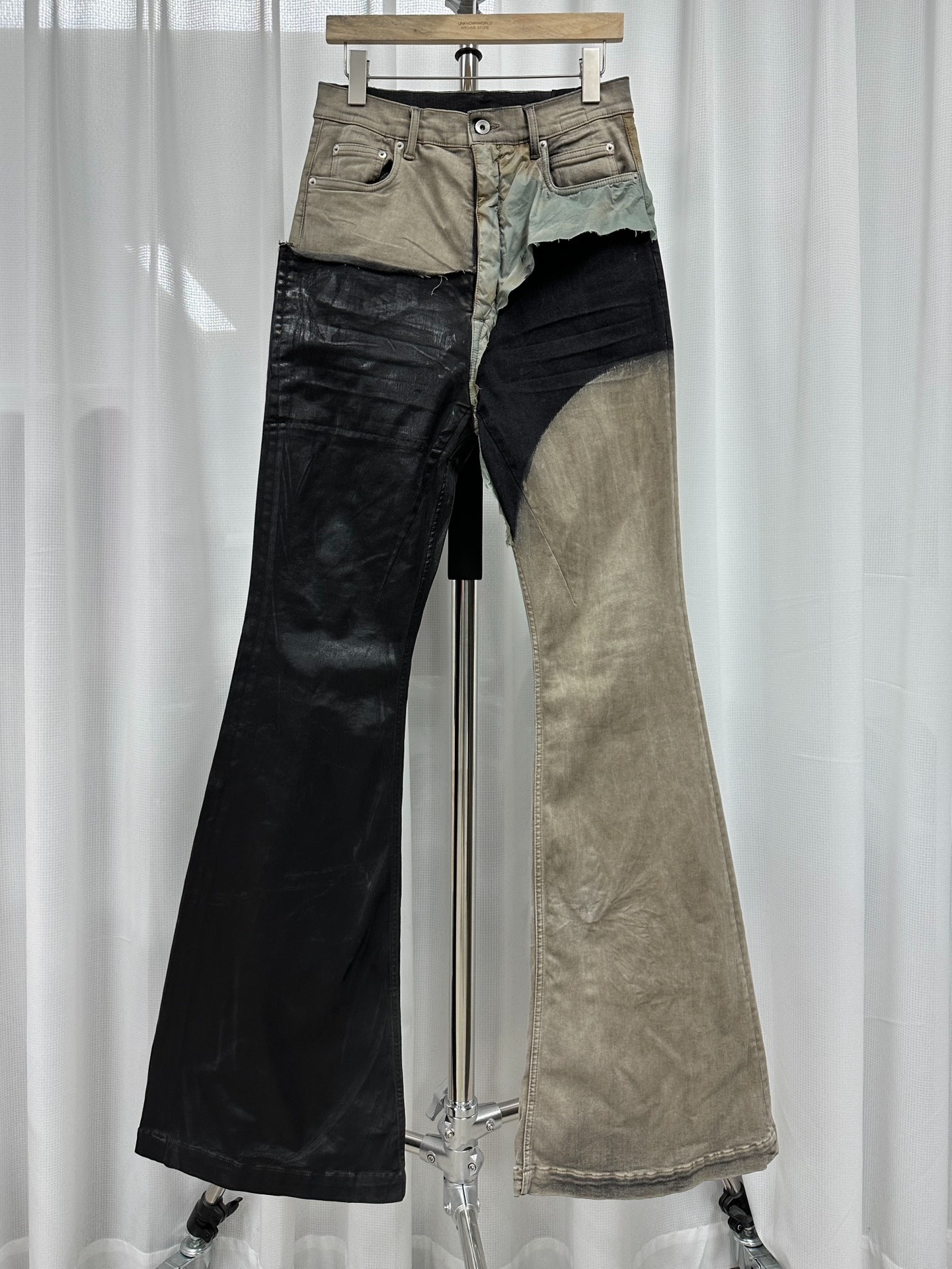 Rick Owens FW22 Bolan Bootcut patchwork coated waxed denim flared pants