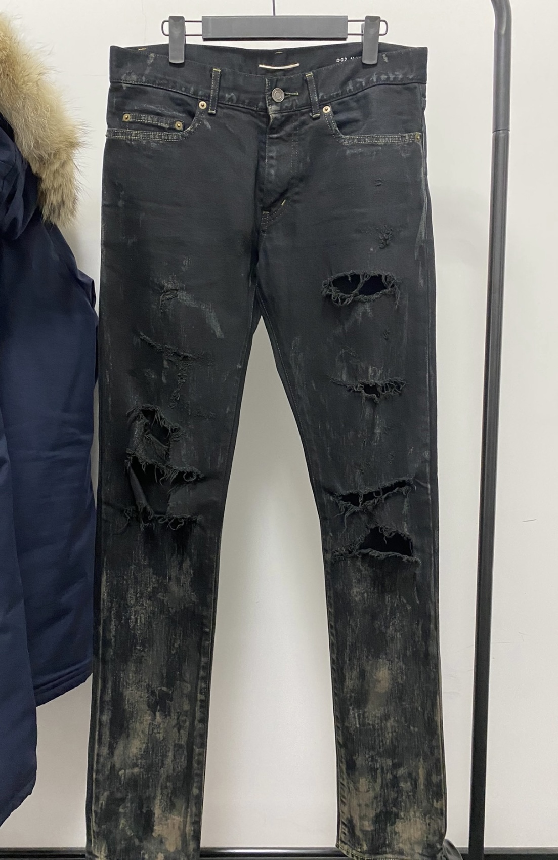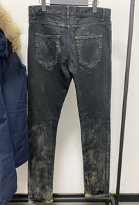 Saint Laurent 15 Years Dirty Washed Yellow Mud Havoc Washed Black Denim Jeans
