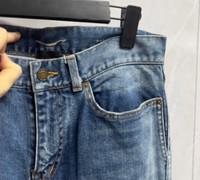 SAINT LAURENT Aqua Blue Washed Distressed Jeans