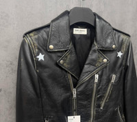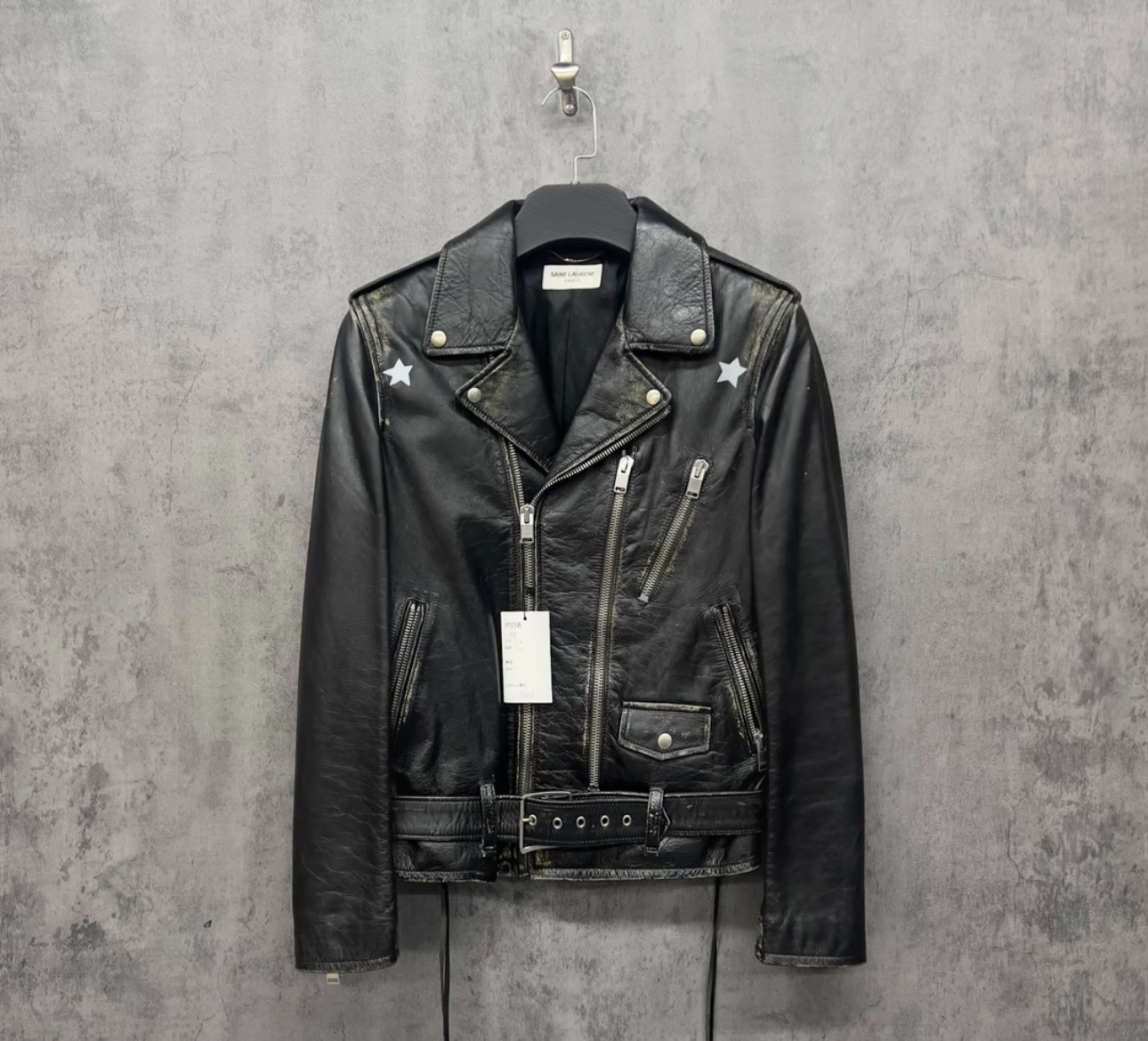 Saint Laurent distressed multi-zip heavyweight leather jacket