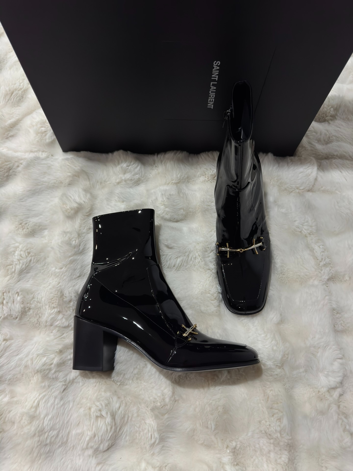 Saint laurent runway-style black and gold men's boots
