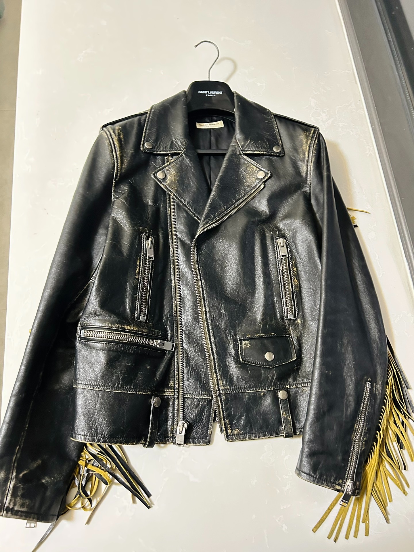 Saint Laurent Slp 16fw distressed tassel lo1 motorcycle leather jacket
