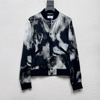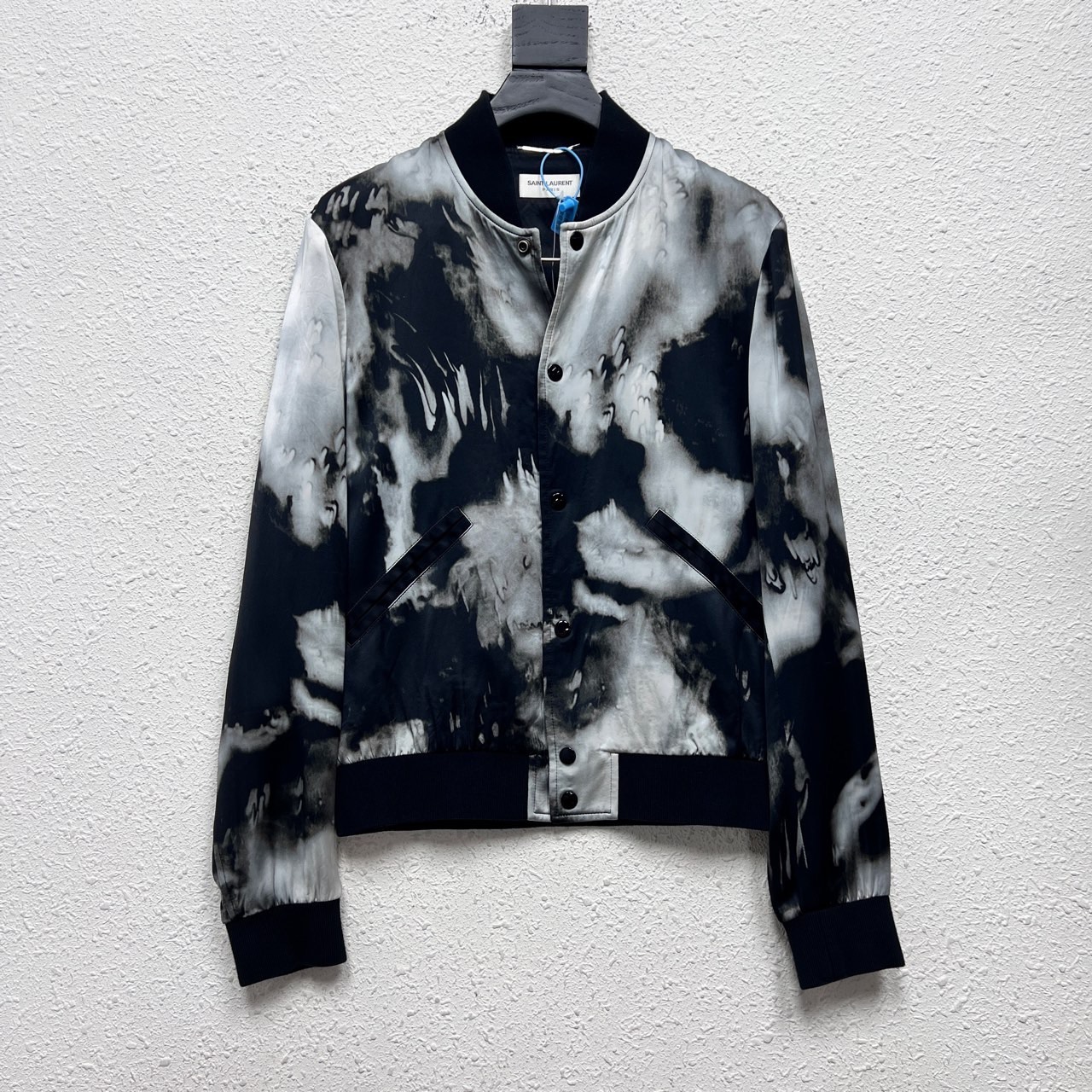SAINT LAURENT SLP black and white tie-dye ink-splash silk jacket