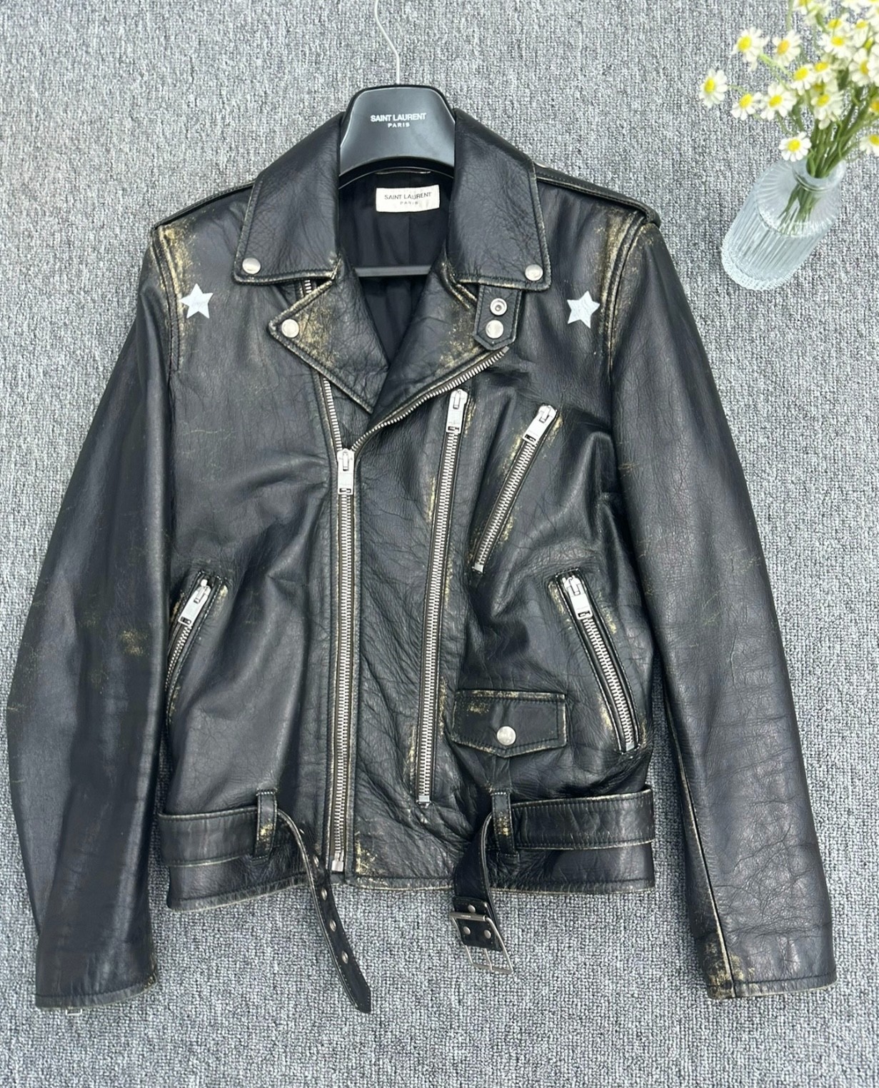 Saint Laurent slp L17 distressed star leather jacket