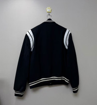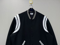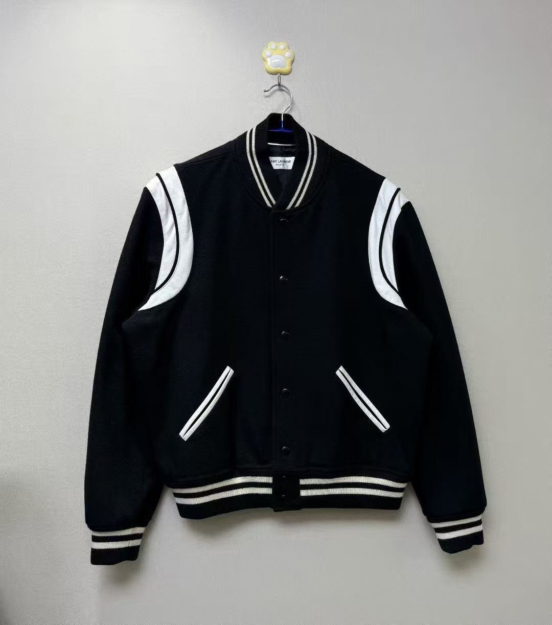SAINT LAURENT SLP New Black and White Leather Baseball Jacket
