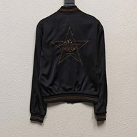 YSL Saint Laurent gold label five-pointed star embroidered silk jacket