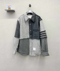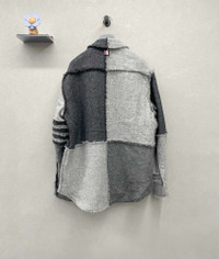 Thom Browne 4-Bar Stripe patchwork shirt-jacket Size 1 Like new Global shipping All sales are final, no returns 20240315-22