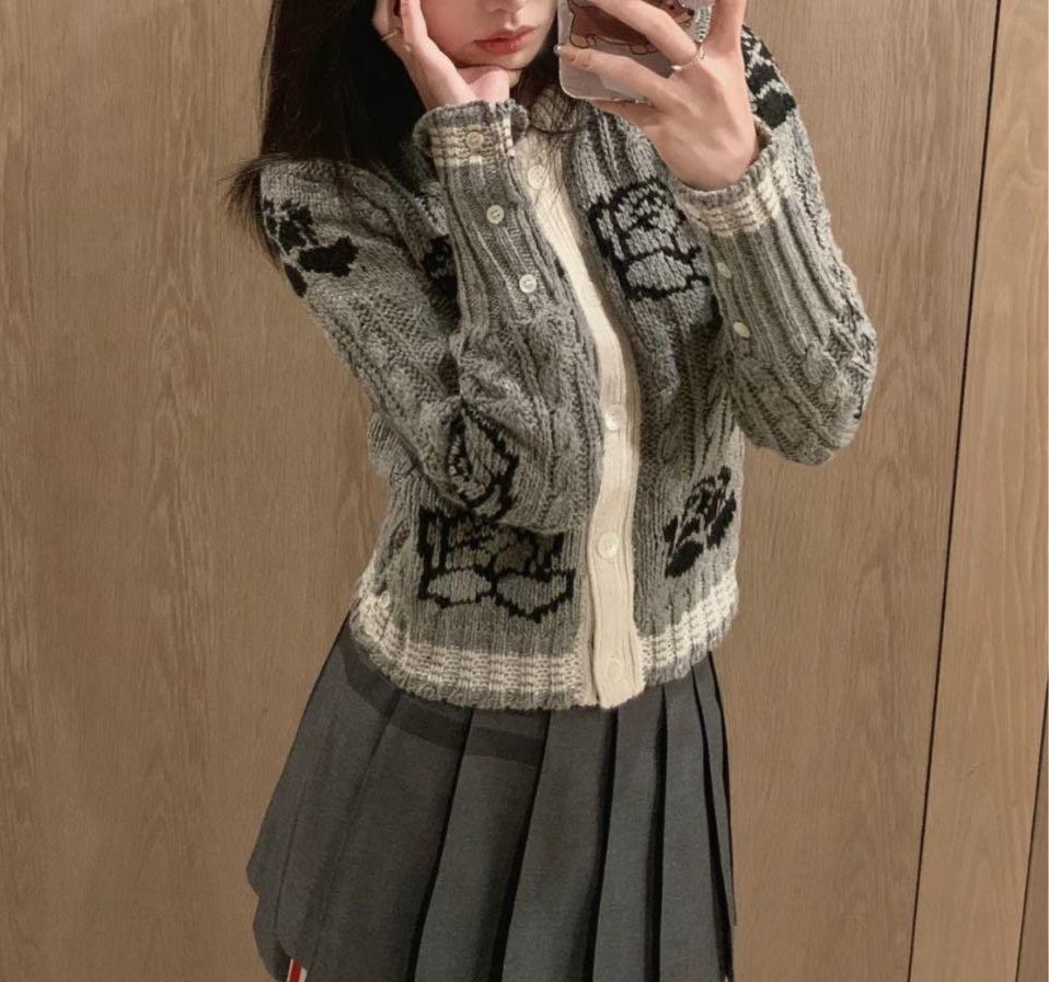 Thom Browne gray knitted cardigan jacket