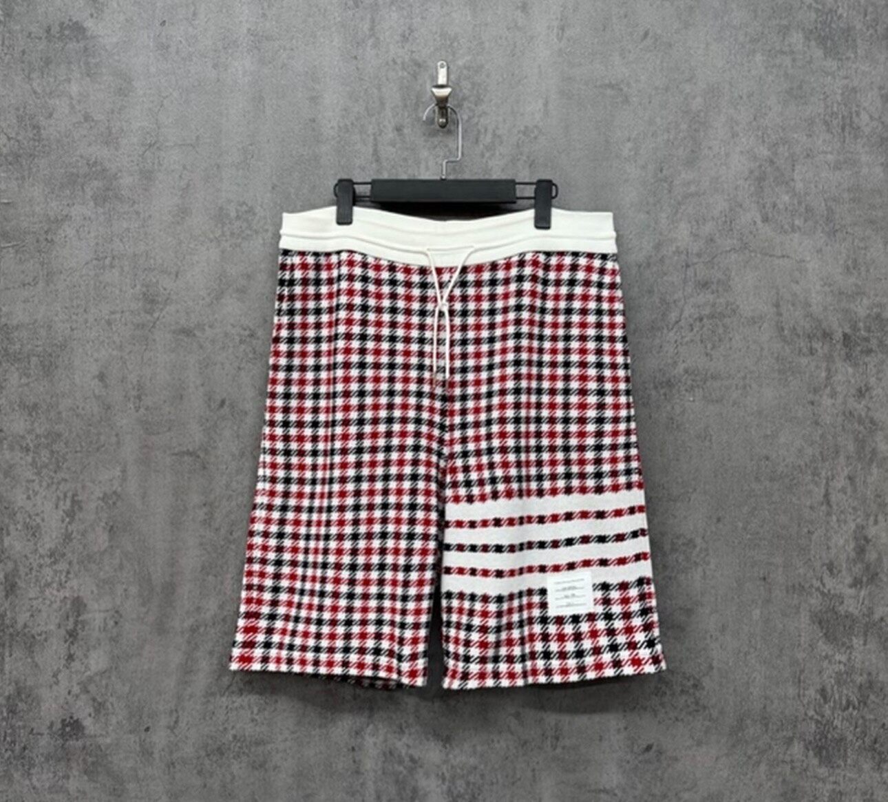 THOM BROWNE Houndstooth Knit Shorts with Webbing Trim